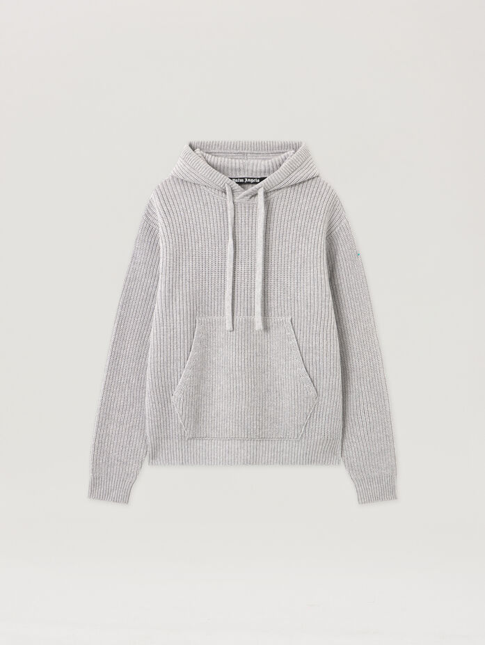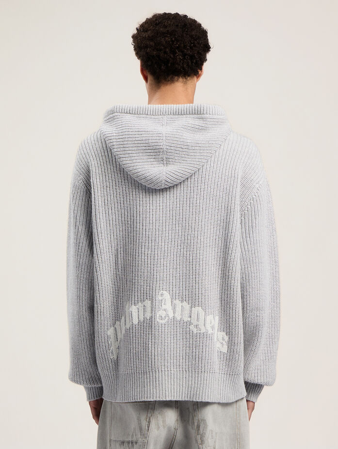 Explore streetwise coolness with the Curved Logo Rib Knit Hoodie, featuring a textured knit and signature logo detail.
